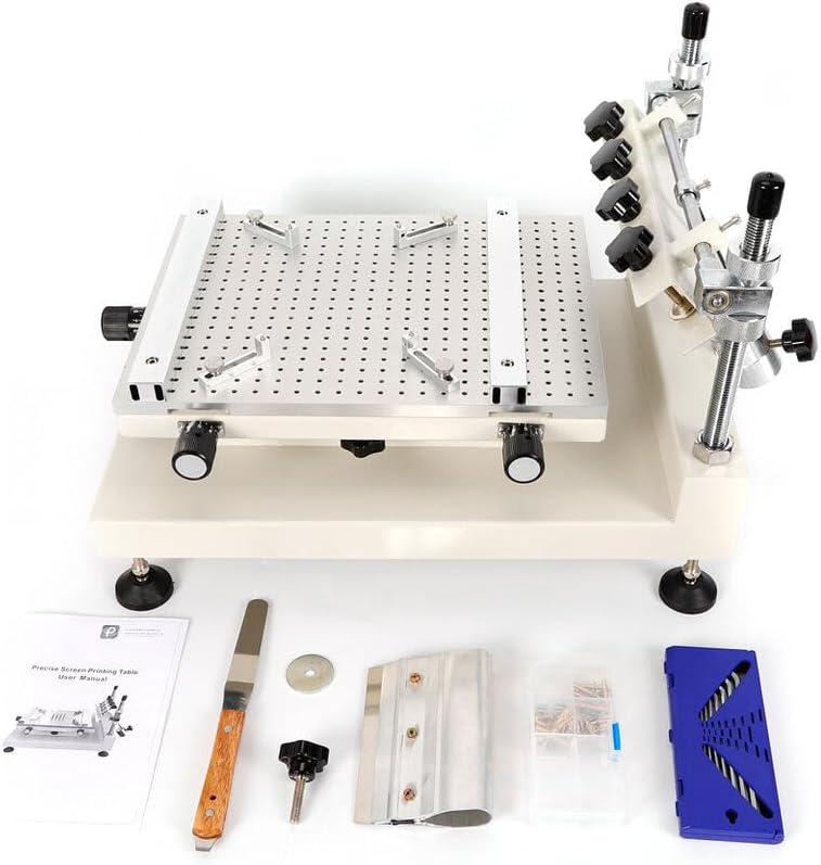 SpecificationsMaterial: AluminumMax. Printing Size: 300*400 mm/11.81*15.75inMax. Screen Frame Size: 370*470 mm/14.57*18.50inPrinting Speed: Manual ControlThickness of Printed Material: 0-80 mm/0-3.15inVertical and Horizontal Adjustment of Worktable: 10 mm/0.39inPrinting Platform Height: 19cm/7.48inRepeatability: ±0.01 mmProduct Size: 54*38*39.9 cm/21.26*14.96*15.71inPackage Size: 61*45*22cm/24*17.7*8.6inNet Weight: 20kg/44.09lbsGross Weight: 23kg/50.70lbsWork Table Size: 300*400mmPrint Size: 250*400mmMax Net Frame Size: 370*470mmWeight:nw.25kg Gw.35kgWhat's Included?1 X 3040 Solder Paste PrinterOne Set of Accessories