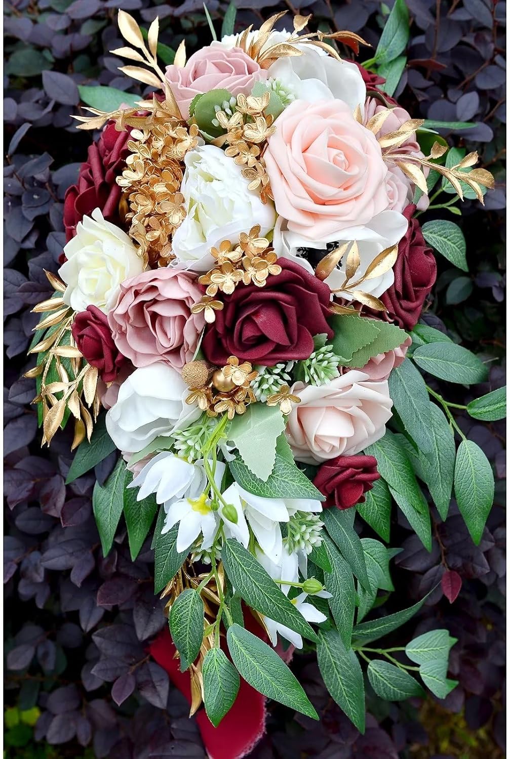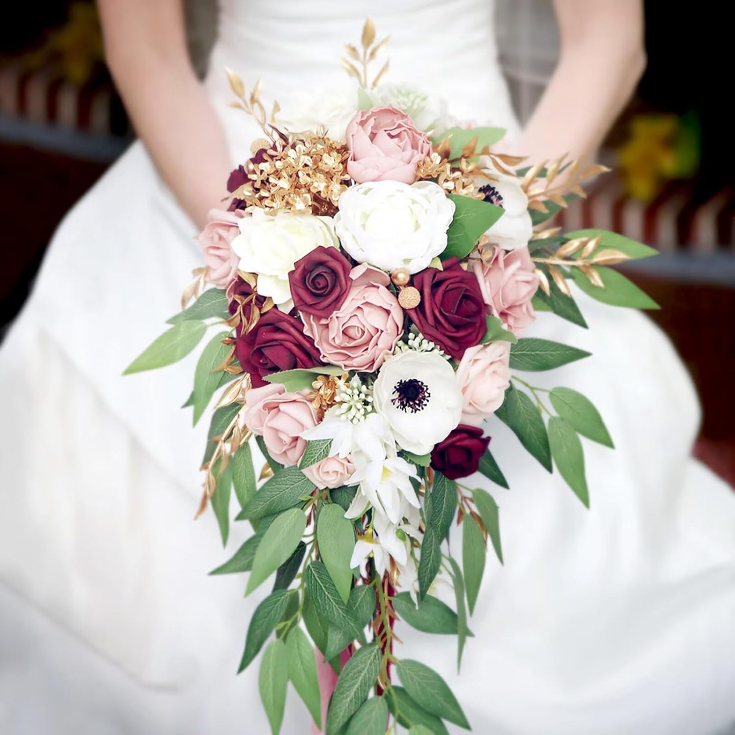 Roahosy aims to provide realistic and high quality artificial flowers.We have professional florist team, and we specialize in wedding flower decorations, home flowers and holiday artificial flower decorations.We hope you can find your favorite artificial flower decoration in Roahosy. May every day be filled with love and happiness!Product Specifications:Brand: Roahosy Product Name: Cascading wedding bouquet Flower Type: Rose, Poppy Suitable Occasions: Wedding, Anniversary, Bridal shower, Banquet Material: Foam, Silk Color: Burgundy, Pink Length: 22 inch Diameter: 8.66 inch Package Includes:1 x Burgundy wedding bouquet If you have any question with our products, please feel free to contact us. We greatly appreciate your suggestion for us. Thank you!