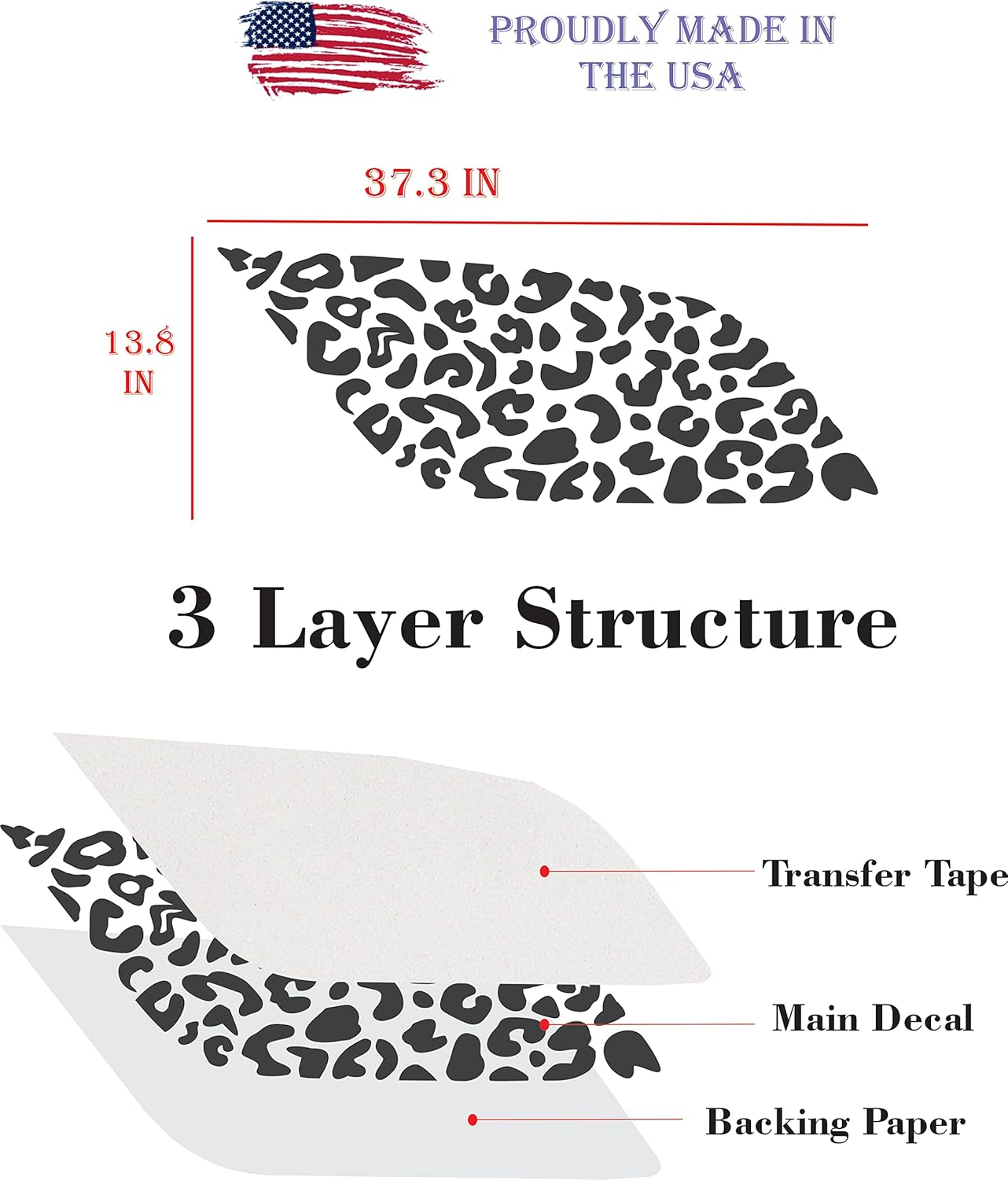 Features: - Leopard Cheetah Print Window Decal - High-Quality US Made Vinyl - 3 Layers Structure - Carwash Safe# Step 1Clean surface thoroughly with soapy water or window cleaner. Make sure to remove grease and dirt.# Step 2Carefully place the decal to the window. Use tape to hold it in place.# Step 3First remove the backing paper on one side, then slowly scrape the decal flat with our squeegee tool, and repeat the previous action on the other side and make sure it is firmly stuck to the window.# Step 4Carefully peel off the transfer paper being especially careful.# Step 5After the transfer paper is removed, wrap the scraper with a towel and reinforce the decal again.Frequency Asked Questions?# Why won't the vinyl stick to the surface? Before installing the decal, the surface must be thoroughly cleaned. Make sure to clean all the recessed areas to remove grease and dirt. Wipe clean using a lint-free cloth or rinse with warm water and let the surface stay dry.# Can the wrap be removed?"Qc Decal" vinyl decals are removable and have no effect on the glass. To remove, heat the material with a heat gun/blow dryer and peel off piece by piece.# There are bubbles after applying?Simply prick them with a needle or pin and rub them out. They will disappear immediately.