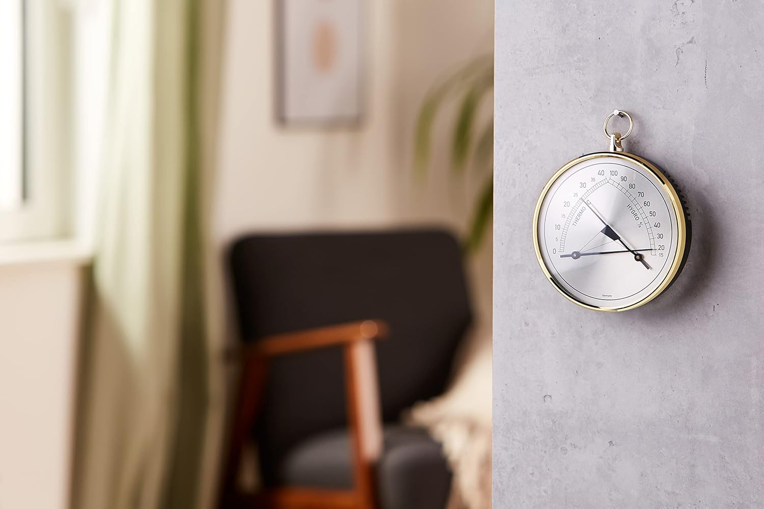 Climatherm thermo-hygrometer in plastic case with brass display rim